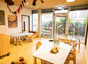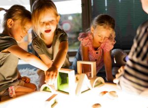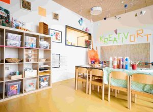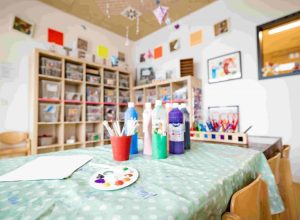 Die Räume gelten bei uns als „dritter Erzieher“ und laden die Kinder durch ihr vielfältiges Material ein, Dinge zu beobachten, zu betasten und auszuprobieren. Dadurch wird das selbsttätige Lernen und künstlerische Handeln der Kinder in besonderem Maße angeregt.