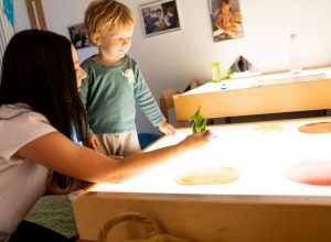 In unserer Kita laden vielfältige Lernwerkstätten die Kinder zum Forschen, Erleben und Kreativsein ein. Im Atelier entstehen kleine Kunstwerke – mit Farben, Naturmaterialien und viel Fantasie. Die Forscherwerkstatt weckt Neugier auf Naturphänomene und technische Zusammenhänge, hier wird experimentiert, beobachtet und hinterfragt. In der Licht- und Schattenwerkstatt entdecken die Kinder spielerisch die Wirkung von Licht, Farben und Formen. Unsere Rollenspielwerkstatt bietet Raum für soziale Erfahrungen, und das Erproben verschiedener Rollen aus der Alltagswelt. Unsere Bewegungswerkstatt bietet viel Platz für körperliche Entfaltung, Gleichgewicht, Koordination und Spaß an Bewegung.