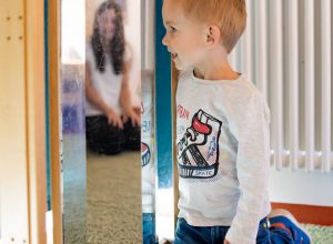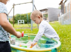 Am liebsten gehe ich am Nachmittag in den Garten. Bei Regen springe ich mit meinen Freunden in der Matschkleidung durch die Pfützen. Bei Sonnenschein düse ich mit den Fahrzeugen über das Gelände oder backe tolle Sandkuchen. Hier treffe ich immer meine Freunde aus dem ganzen Haus. Ich spiele aber auch gerne drinnen. Da kann ich mit meinem Freund eine Lernwerkstatt besuchen oder gemeinsam in der Gruppe spielen. Oft machen wir auch noch etwas fertig, was wir am Vormittag angefangen haben. Gerade beim Bauen und Konstruieren oder im Atelier brauchen wir viel Zeit für unsere Werke.